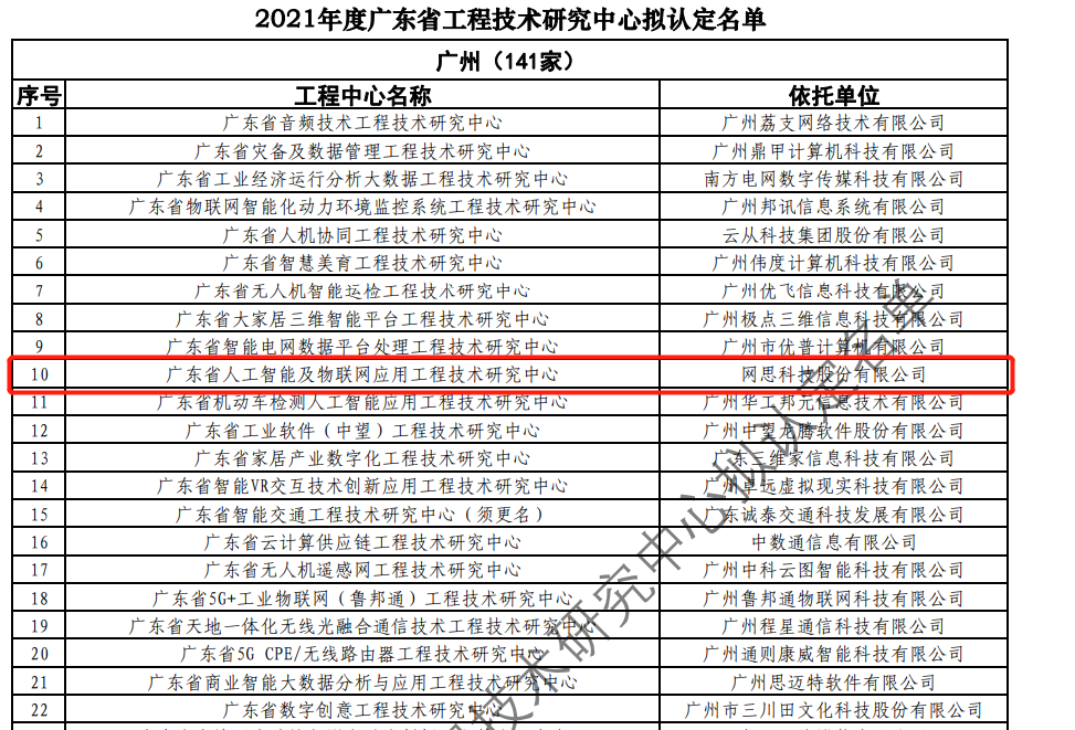 日前,广东省科技厅发布2021年度广东省工程技术研究中心名单。经过层层筛选、专家评审,依托kaiyun·开云(中国)官方网站-kaiyun.com 建设的“广东省人工智能及物联网应用工程技术研究中心”榜上有名。广东省工程技术研究中心主要依托省内行业、领域具有科技实力的、拥有一定规模以上创新型企业建设,部分依托高校和科研院所组建。工程中心旨在